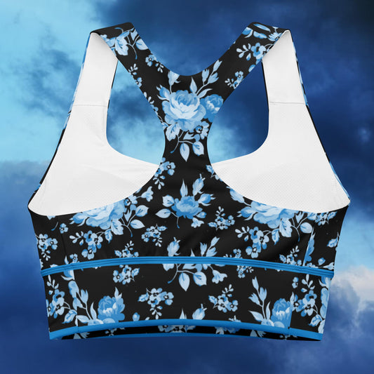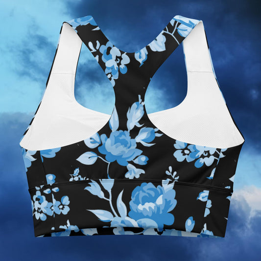 Blue Rose Black Longline Sports Bra