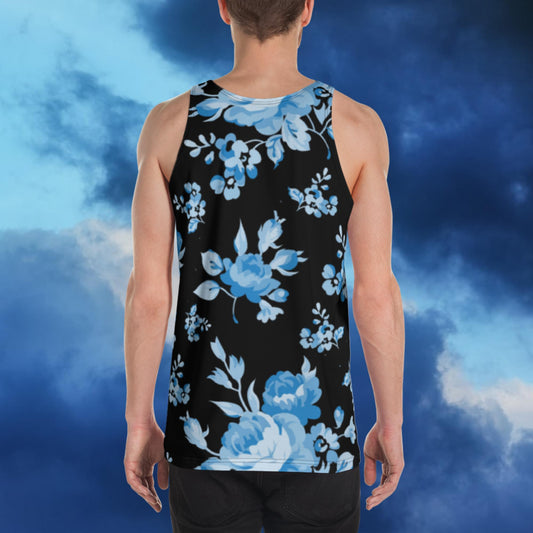 Blue Rose Black Unisex Tank Top