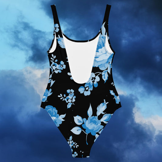 Blue Rose Black One-Piece Swimsuit