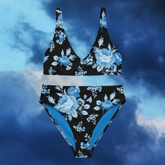 Blue Rose Black Recycled High-Waisted Bikini