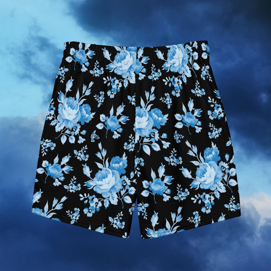 Blue Rose Black Men's Swim Trunks