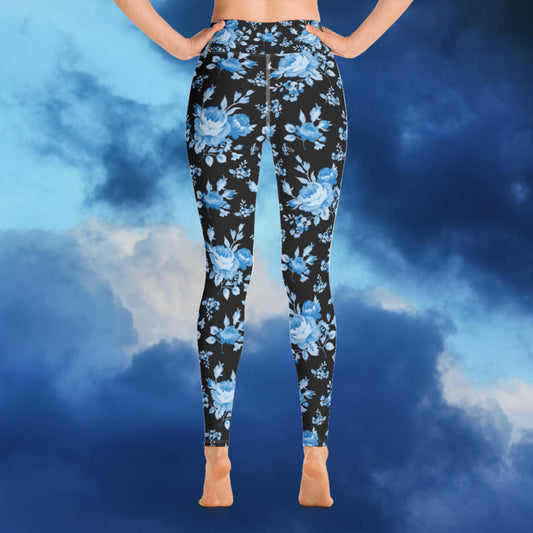 Blue Rose Black Yoga Leggings