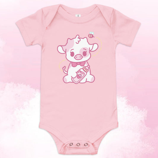 Strawberry Cow Bottle Baby Short Sleeve One Piece